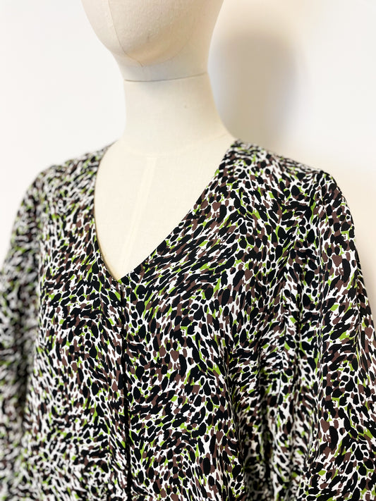 Brown and Green Printed Dress