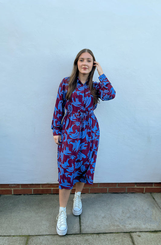 Blue and Wine Tie Waist Dress