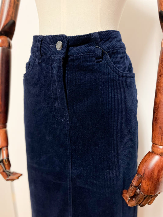 Navy Chunky Corduroy Midi Skirt